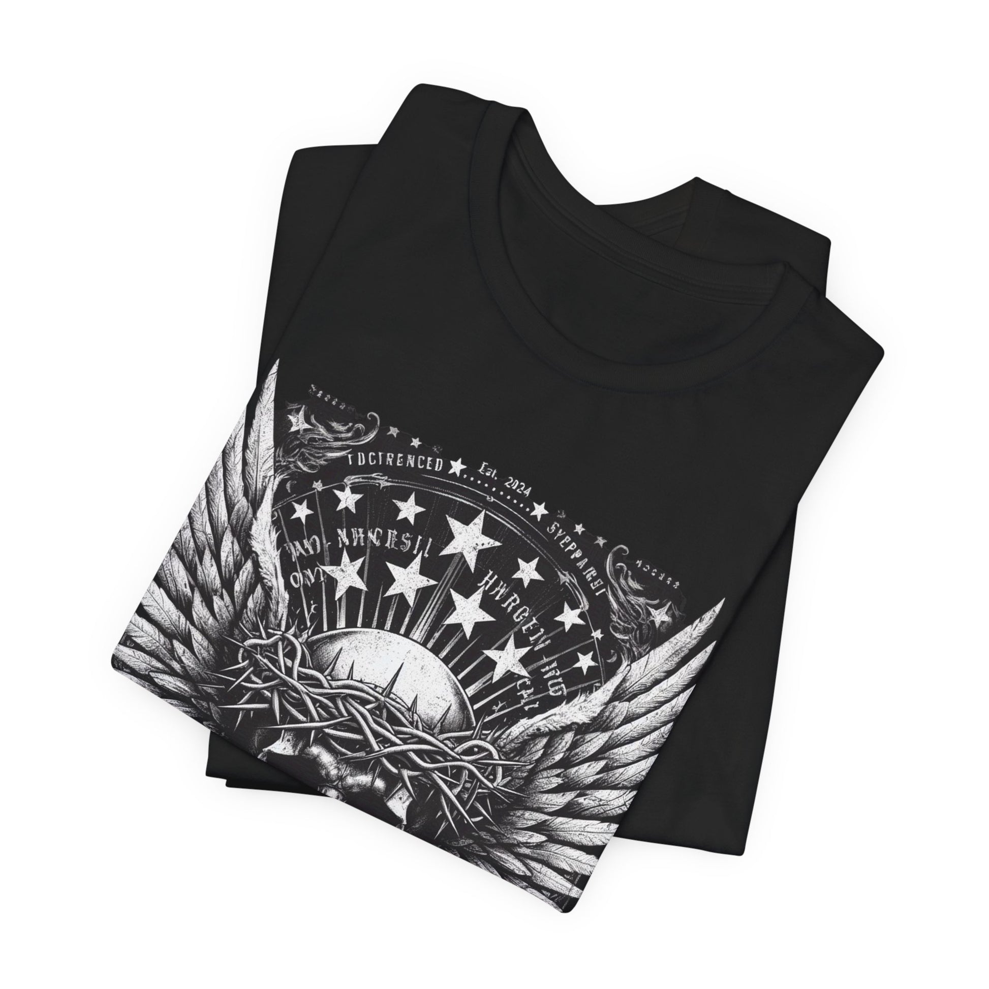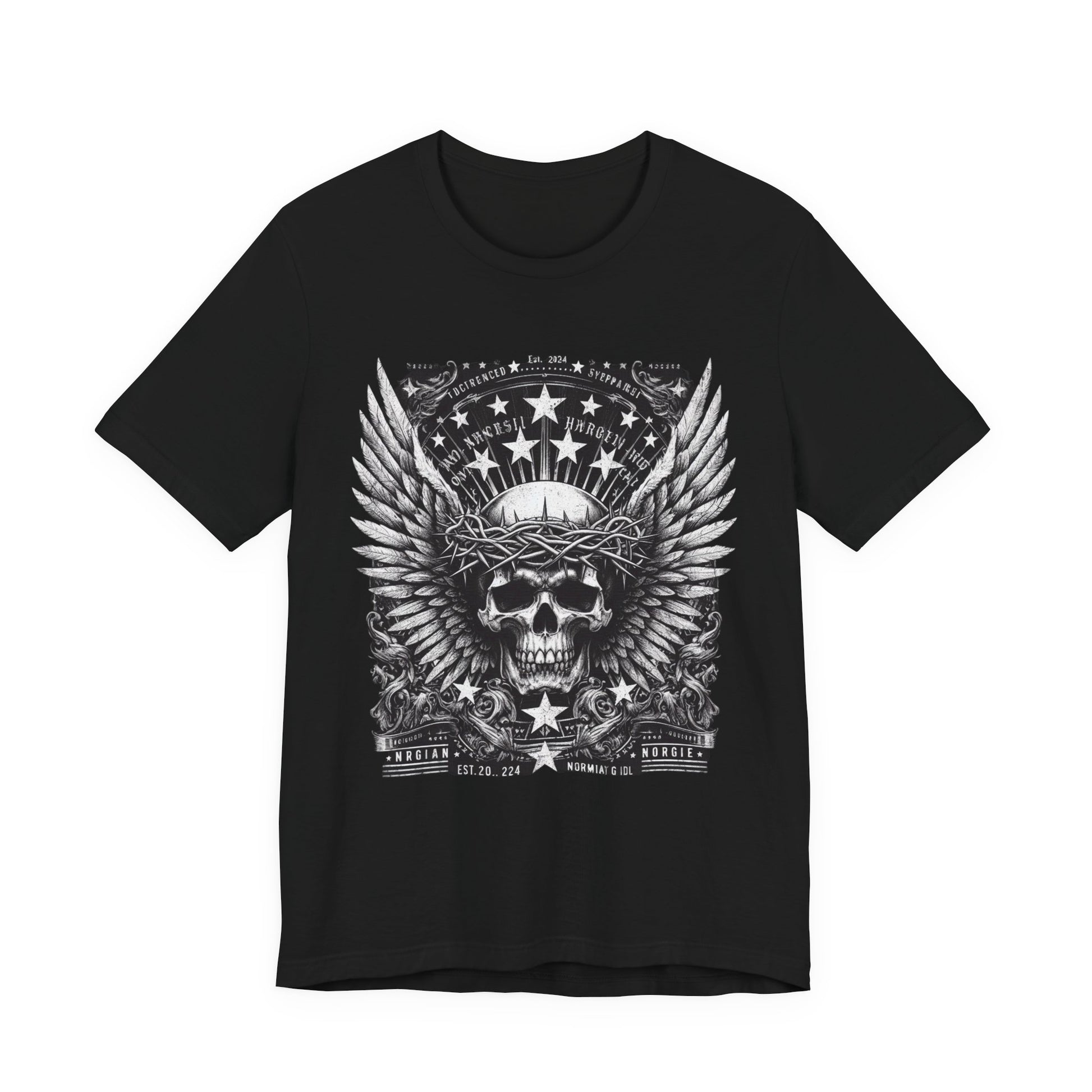 Skull Wings Tee — Gothic Skull with Crown of Thorns & Stars Graphic T-Shirt